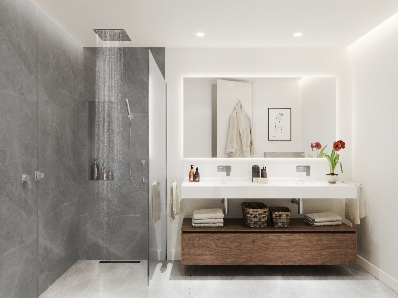 Modern and open plan design, the apartments are set over just three floors featuring a large terrace or garden area ideal for alfresco dining and relaxing in the sun. These beautiful homes features smart home automation by Lutron, energy efficient air-conditioning and underfloor heating by Daikin. There is also the opportunity to change and upgrade specifications to suit your needs.