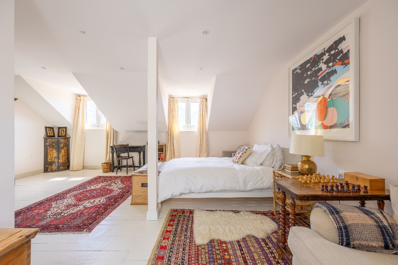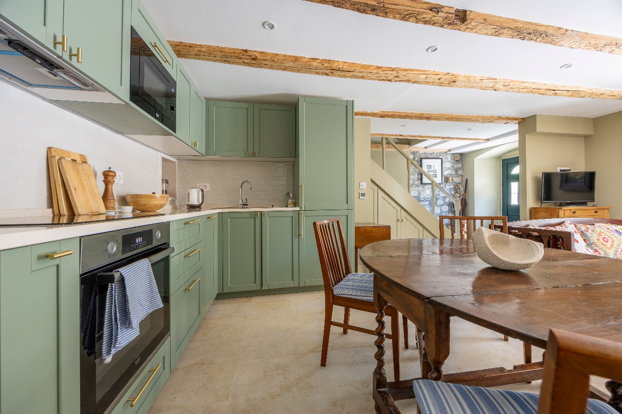 - Living area: Open-plan kitchen, dining, and living room with French doors opening onto the terrace