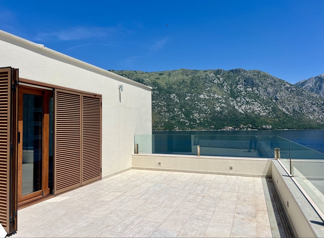 This elegant villa is located in the coastal village of Stoliv, only 90 meters from the sea, offering stunning views of the Bay of Kotor.