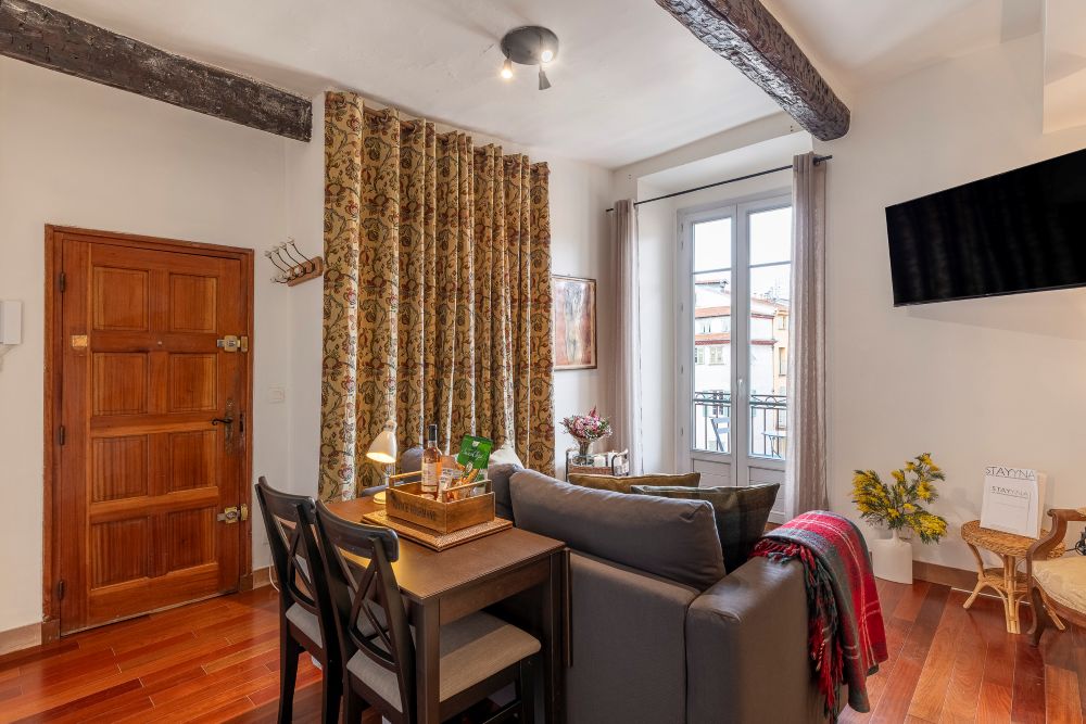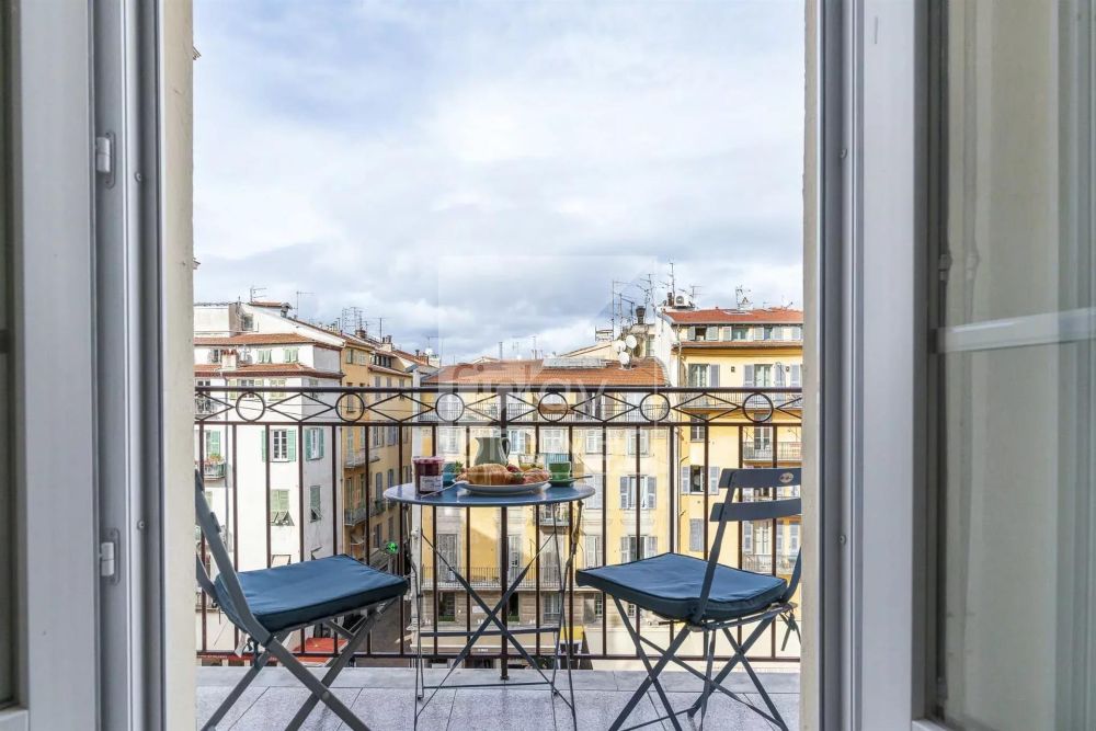 Located in the heart of Old Nice, directly on the famous Place Rossetti, this 2-room apartment represents a rare investment or pied-à-terre opportunity. Nestled on the 5th and last floor, WITHOUT ELEVATOR, it dominates the effervescence of the city while offering an appreciable calm.With a surface area of 27.42 m² (Carrez Law), this bright and air-conditioned property is intelligently arranged. It opens onto a convivial living room with open kitchen, completed by a comfortable bedroom and a functional bathroom with WC. An exceptional asset for the area: a private balcony of 3 m² allows you to enjoy the unique atmosphere of the historic district.The apartment benefits from a major advantage: seasonal rental (Airbnb type) is officially authorized by the co-ownership regulations, ensuring optimal profitability for investors. It is ready to welcome you or to be rented immediately.
