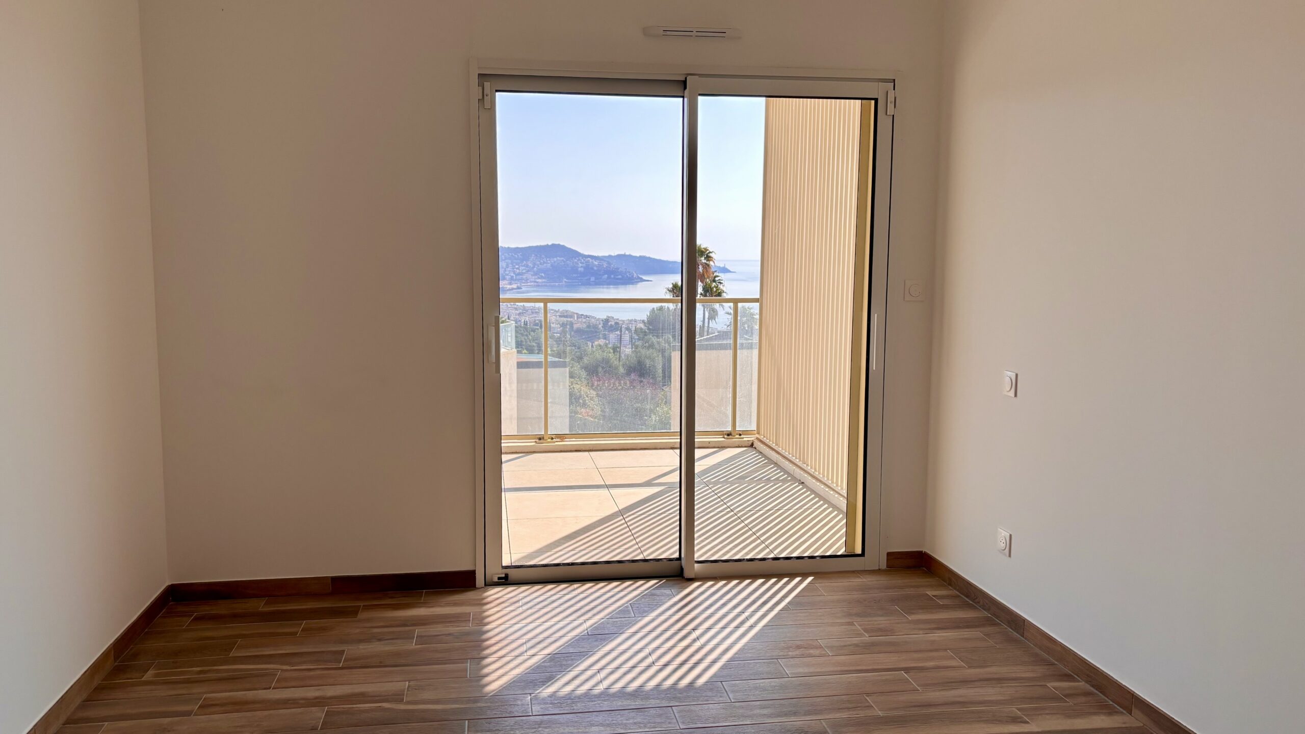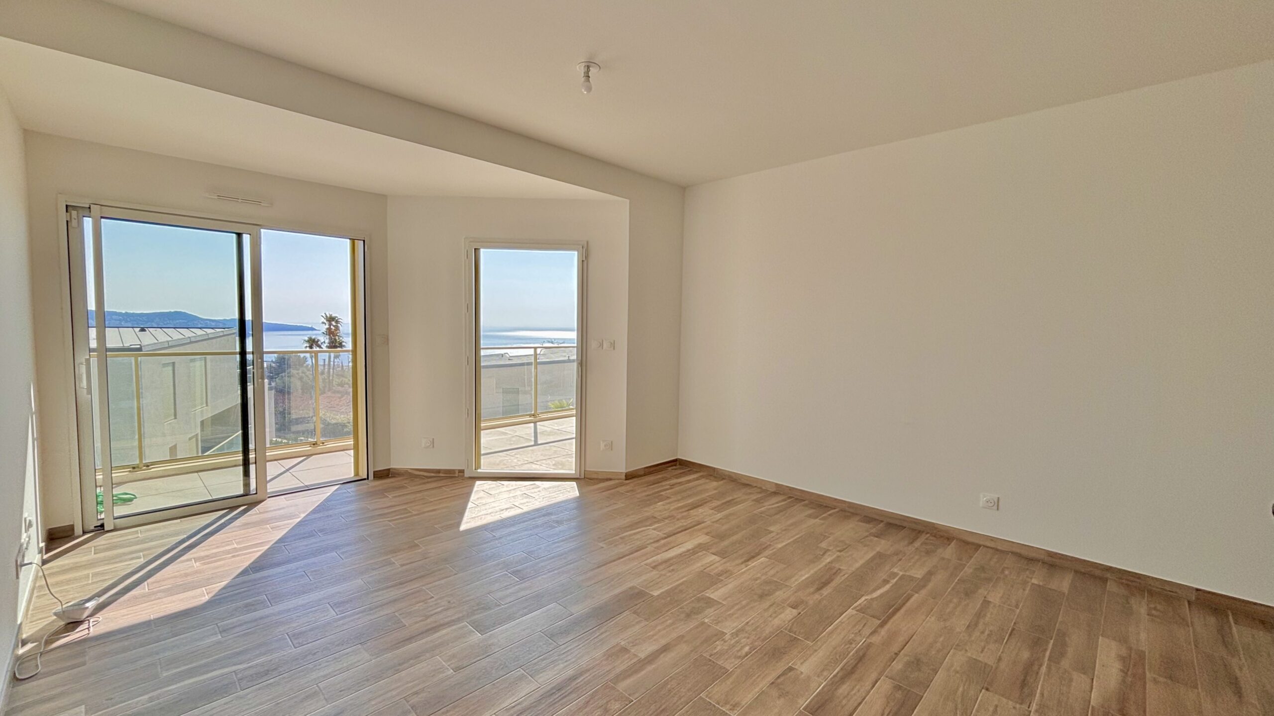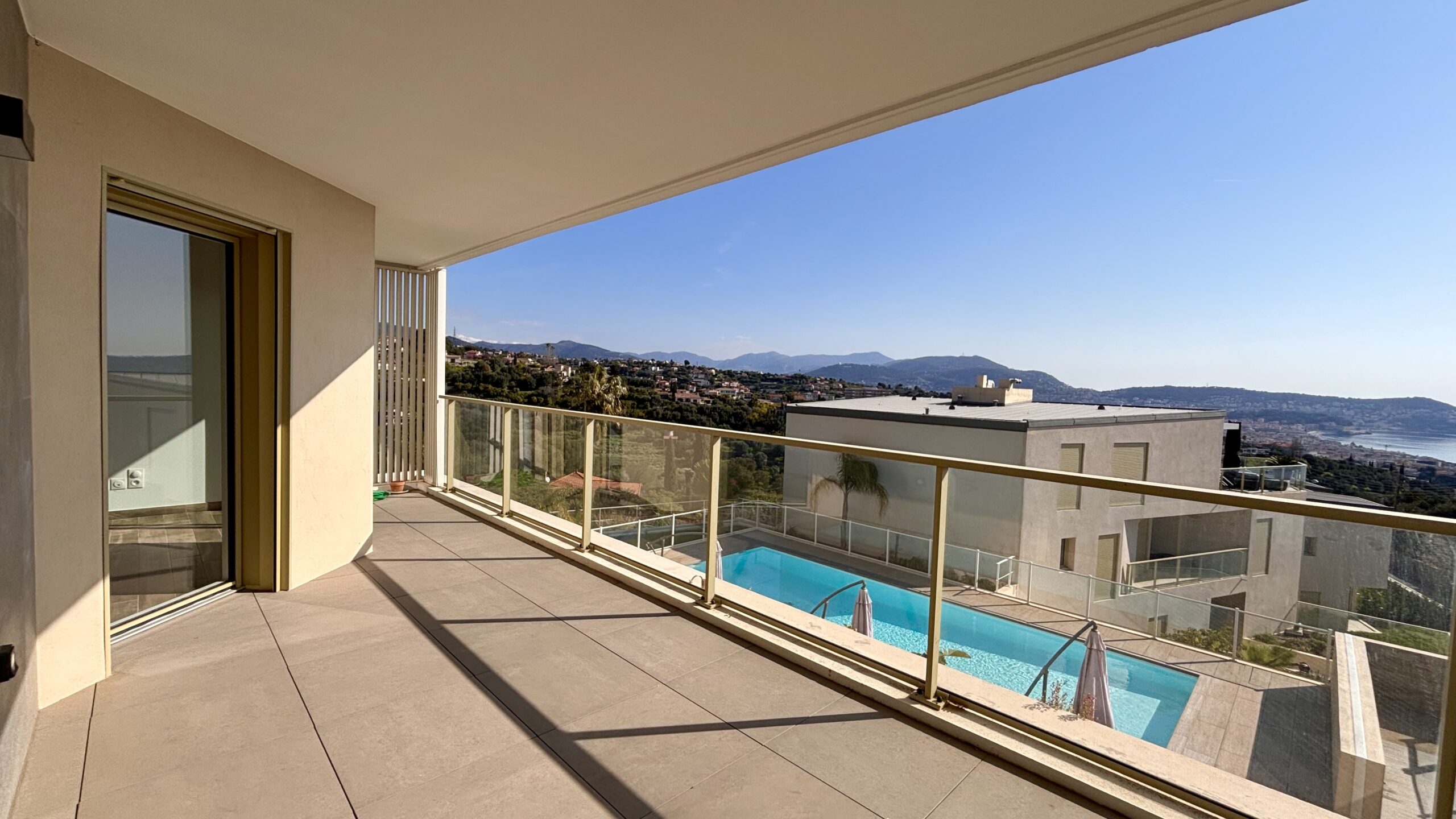 Imagine a horizon where the deep blue of the Baie des Anges meets the peaks of the mountains. This 82 m² (883 sq ft) apartment, located within the prestigious Blue Pearl residence delivered in 2022, offers a total immersion in the bright light of the Riviera. From the first floor, the gaze embraces a spectacular panorama that stretches from the Mediterranean to the green hills of Nice.